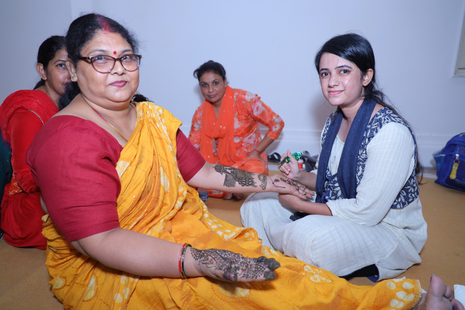 मेहंदी प्रतियोगिता में दिल्ली में विभिन्न स्थानों से आई प्रतिभागियों ने भाग लिया जिन्होंने उपस्थ्ति आंमत्रित महिला आगंतुकों को मेहंदी लगाई। मेहंदी प्रतियोगिता के परिणाम के लिए गठित कमेटी द्वारा चयनित किए गए विजेता प्रतिभागियों सुश्री सीमा, इरतिका खान और अंशिका शुक्ला को प्रमाण पत्र एवं पुरस्कार से सम्मानित किया गया।