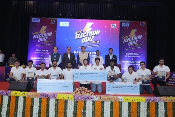 एनटीपीसी ने नोएडा स्थित एनटीपीसी पावर मैनेजमेंट इंस्टीट्यूट (पीएमआई) में 19 दिसंबर 2025 को इलेक्ट्रॉन क्विज़ 2025 के राष्ट्रीय फाइनल का सफलतापूर्वक आयोजन किया। फाइनल मुकाबले में देश के प्रमुख इंजीनियरिंग और प्रबंधन संस्थानों—आईआईएम कोलकाता, आईआईएम नागपुर, आईआईएम लखनऊ, आईआईटी मद्रास, आईआईटी कानपुर और एक्सएलआरआई जमशेदपुर—के बीच कड़ा और रोमांचक मुकाबला देखने को मिला।आईआईटी कानपुर की टीम, जिसमें आदित्य पाधी और स्पर्श प्रदीप जैन शामिल थे, ने उत्कृष्ट प्रदर्शन करते हुए इलेक्ट्रॉन क्विज़ 2025 का खिताब जीत लिया और 1 लाख रुपये की पुरस्कार राशि प्राप्त की। आईआईएम लखनऊ के प्रशांत सिंह चौहान और निश्चय शोपूरकर ने प्रथम उपविजेता स्थान हासिल करते हुए 60,000 रुपये की पुरस्कार राशि जीती, जबकि आईआईएम कोलकाता के कुमार कीर्ति और शिवदर्शन एस द्वितीय उपविजेता रहे और उन्हें 40,000 रुपये की पुरस्कार राशि प्रदान की गई।